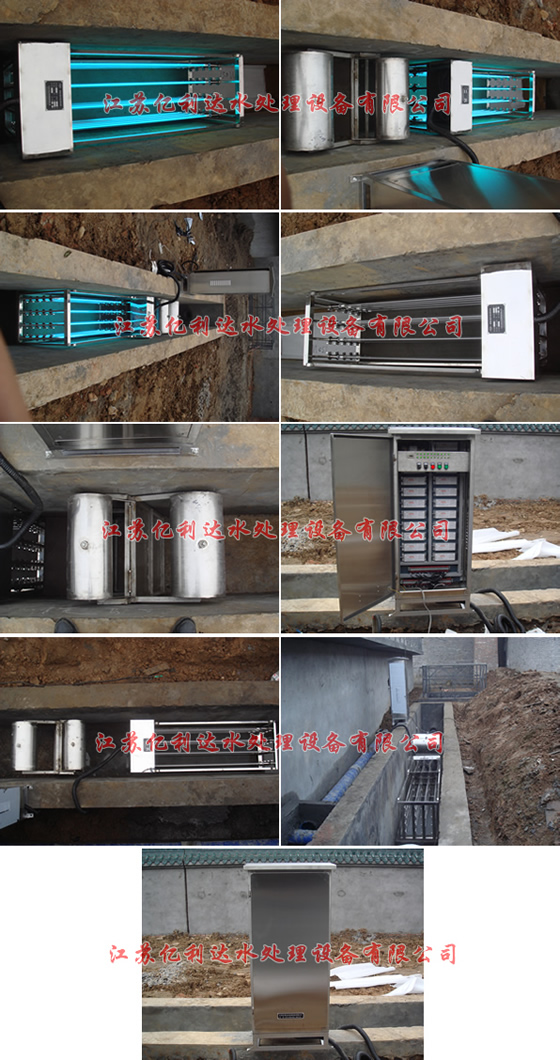 每一組模塊有一套紫外線強(qiáng)度監(jiān)測(cè)系統(tǒng),其包括紫外光探頭、UV強(qiáng)度儀等配件,紫外探頭安裝水下便于監(jiān)測(cè)石英管的結(jié)垢情況及紫外燈的強(qiáng)度變化。